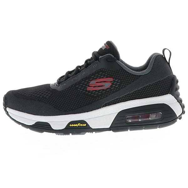 Das weiche Obermaterial aus atmungsaktivem Funktoins-Mesh macht den sportlichen Look dieser Sportschuhe aus. Die Air-Cooled Memory Foam Innensohle, die Skech-Air Zwischensohle mit sichtbarer Luftkissendämpfung und die Goodyear® Performance Laufsohle mit verbesserter Traktion, Stabilität und Langlebigkeit sorgen für guten Halt und sicheren Stand.