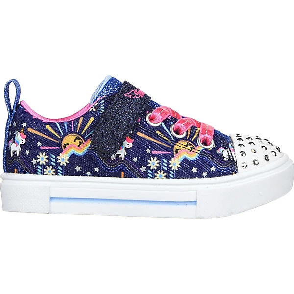 Perfekt für die kleinen Füßchen: die Low Sneakers von der Marke SKECHERS. Das textile Obermaterial ist anpassungsfähig und überzeugt durch ein geringes Gewicht. Die coolen Blinkie-LEDs leuchten bei Bewegungen. Ein einfaches An- und Ausziehen ist durch den Klettverschluss ein Leichtes.