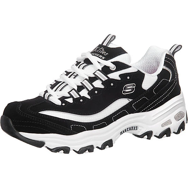 Die SKECHERS D’Lites Biggest Fan Sneakers Low zeigen sich mit glitzernden Akzenten. Der Fersenbereich ist verstärkt und die vorne hochgezogene, flexible Profil-Laufsohle ist rutschhemmend.