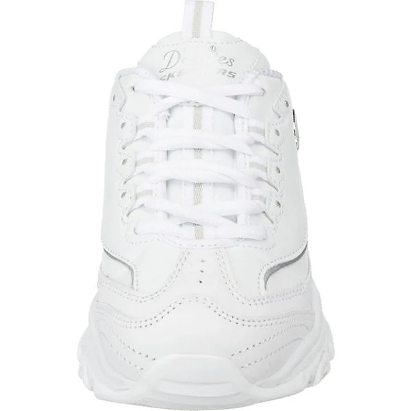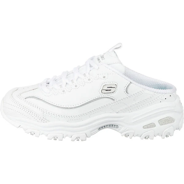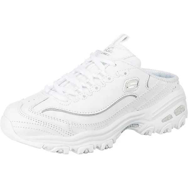 Die SKECHERS D’Lites Scene Setter Sneakers Low bestehen aus echtem Leder und sind hinten offen gestaltet. Die gepolsterte Air-Cooled-Memory-Foam-Decksohle sorgt für einen hohen Tragekomfort.