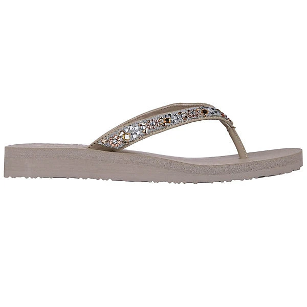 Textile Riemchen mit kleinen funkelnden Strasssteinchen sorgen bei diesem tollen Zehentrenner für das Highlight schlechthin. Das weiche Yoga Foam Fußbett lässt Sie bequem durch den Tag marschieren. Die flache Traktionslaufsohle bietet Ihnen garantiert höchsten Tragekomfort. Hergestellt aus 100% veganen Materialien.