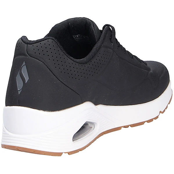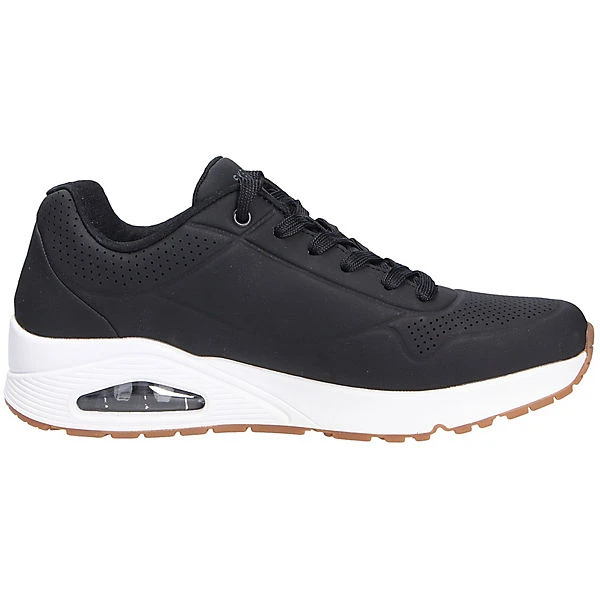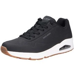 Sportiver Herrenschnürschuh der Marke Skechers aus einem feinen hochwertigem Synthetikleder. Innen ist der Schuh mit einem elastischen sowie atmungsaktiven Textil augestattet. Die weich gepolsterte textile Einlegesohle ist auswechselbar und schafft somit Platz für eigene Einlagen. Die Schuhform ist ideal für normal weite Füße (Weite F). Der Keilabsatz hat eine Höhe von cirka 1 cm ,als Sohlenmaterial kommt ein griffiges und abriebarmes Gummi zum Einsatz. Über den Schnürverschluß ist eine optimale Anpassung an den Fuß möglich. Durch die runde Schuhspitze wirkt der Schuh dezent am Fuß und bietet genügend Platz für die Fußzehen. Die Schuhgröße fällt regulär aus.