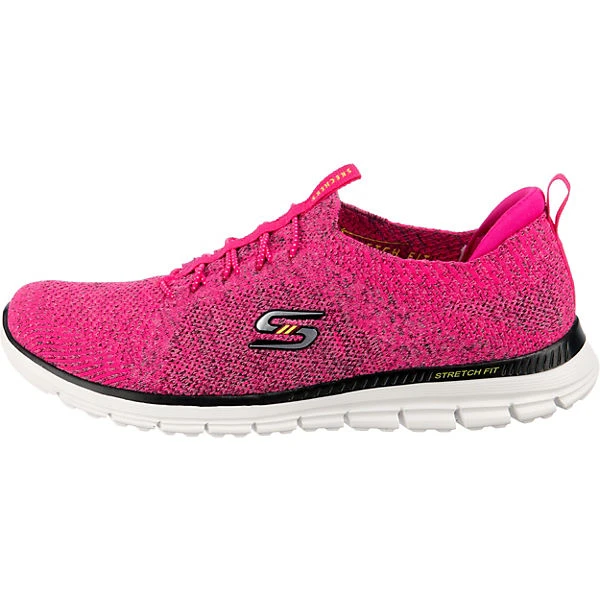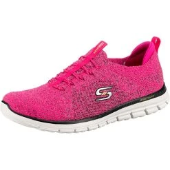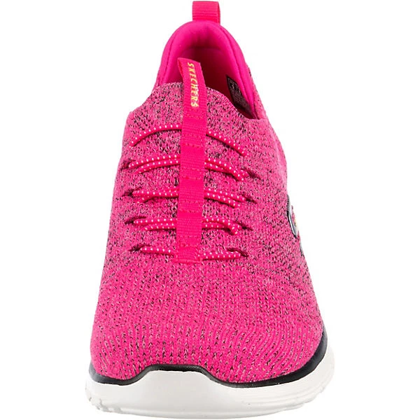 Skechers Damen Low Sneaker/ Slip-On Sneaker/ sportliche Slipper SHE´S MAGNIFICENT Pink Textil – komfortable Fußbettung für ganztägigen Tragekomfort – Elastikband in Schnüroptik über Spann – Waschmaschinen geeignet – flexible, rutschhemmende Laufsohle – gepolsterter Einstieg – Logo auf der Außenseite und Zunge