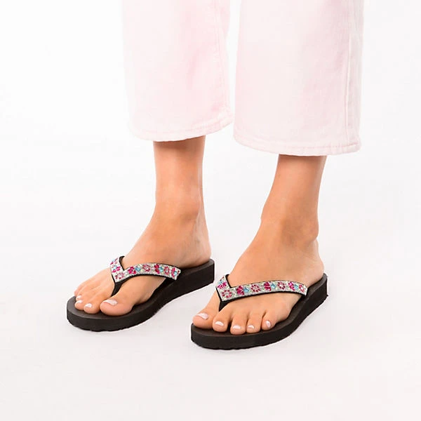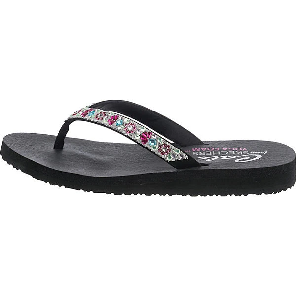 Toll zu vielen Anlässen: Die ansprechenden Zehentrenner der Marke SKECHERS. Das Schuhpaar kommt ohne Verschluss aus, sodass ganz einfach hineingeschlüpft werden kann. Das Obermaterial des Paares besteht aus Synthetik und punktet mit der modischen Aufmachung. Ein Vorteil ist zudem das anschmiegsame Polyester-Futter.
