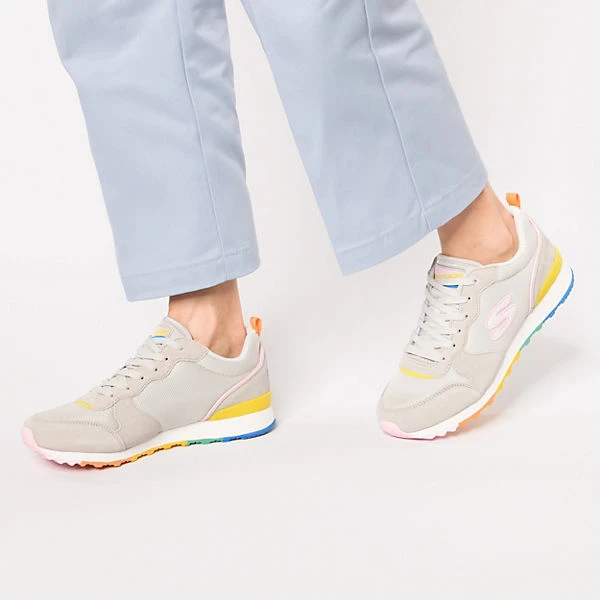 Die praktischen Low Sneakers der Marke SKECHERS eignen sich praktisch zu verschiedenen Anlässen. Das Obermaterial besteht aus echtem Rindsleder. Das Textilfutter aus Polyester ist angenehm anpassungsfähig.