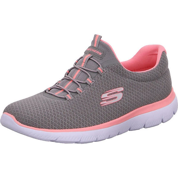 – gepolsterte Einstiegskanten- elastische Bänder auf dem Spannn- flexible, rutschhemmende Profil-Laufsohle, vorne hochgezogenn nDiese federleichten SUMMITS Sneakers Low von SKECHERS sind gut für Sport und Freizeit geeignet. Die dick gepolsterte Memory Foam-Decksohle sorgt für besonders angenehmen Tragekomfort.n nVerschluss: SchnürverschlussnWechselfußbett: JanAbsatzart: Flachn nObermaterial: Textil (Textil)nFutter: SynthetiknDecksohle: Sonstiges Material (Sonstiges Material)nLaufsohle: Sonstiges Material (Gummi)n n