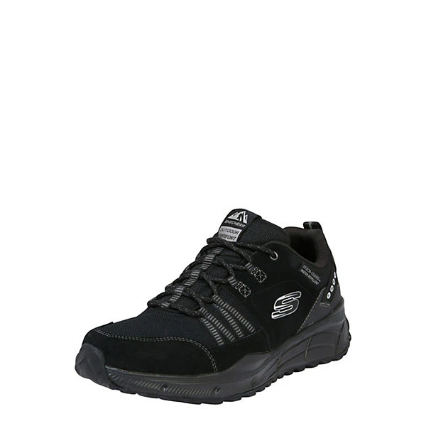 FarbeschwarzOptikunifarbenObermaterialLeder, TextilObermaterialeigenschaftenwasserabweisendInnenmaterialTextilStilsportlichApplikationenLogoschriftzugBesondere Merkmalemit wasserabweisendem MaterialVerschlussSchnürung