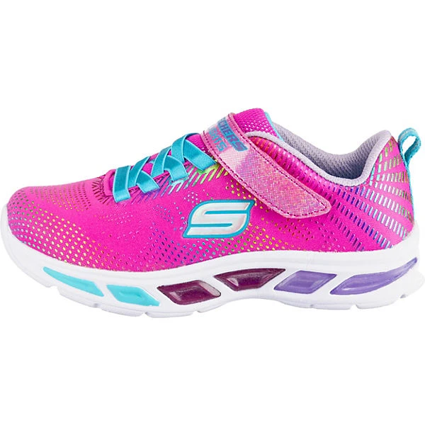 Schöner Halbschuh für Mädchen der Marke Skechers aus einem feinen hochwertigem Synthetikmaterial. Innen ist der Schuh mit einem elastischen sowie atmungsaktiven Textil augestattet. Die weich gepolsterte textile Einlegesohle ist auswechselbar und schafft somit Platz für eigene Einlagen. Die Schuhform ist ideal für normal weite Füße (Weite F). Der Absatz ist durchgehend flach ,besonders strapazierfähig und haltbar ist die weiche PU-Sohle.Gerade bei Kinderschuhen hat sich diese Sohlenart aufgrund Ihrer Fexibilität und Stabilität bewiesen. Ein Klettverschluß zum einfachen und bequemen an- und ausziehen sorgt für einen guten Halt.Ebenfalls ist eine stufenlose Anpassung an den Fuß möglich. Für eine gesunde Entwicklung des Kinderfußes bietet die runde Schuhspitze genügend Platz für den Vorfuß und die Fußzehen. Die Schuhgröße fällt regulär aus.