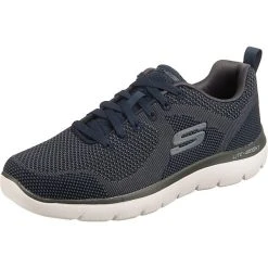 Die SKECHERS Summits Brisbane Sneakers Low sind im Fersenbereich verstärkt und mit einer praktischen Anziehlasche ausgestattet. Die vorne hochgezogene Profil-Laufsohle ist flexibel und rutschhemmend.