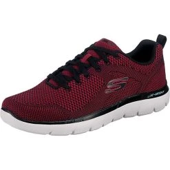 Skechers Herren Schnürschuhe/ sportliche Halbschuhe/ Sportschuhe/ Low Sneaker SUMMITS BRISBANE Rot-Schwarz Textil – geringes Gewicht – Strickoptik – gepolsterter Einstieg – Zierstreifen – verstärkter Zehen- und Fersenbereich – gepolsterte Memory-Foam-Decksohle – flexible Laufsohle