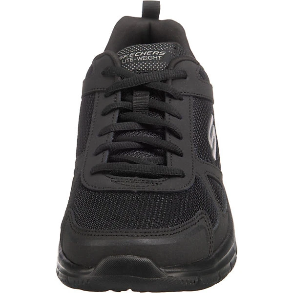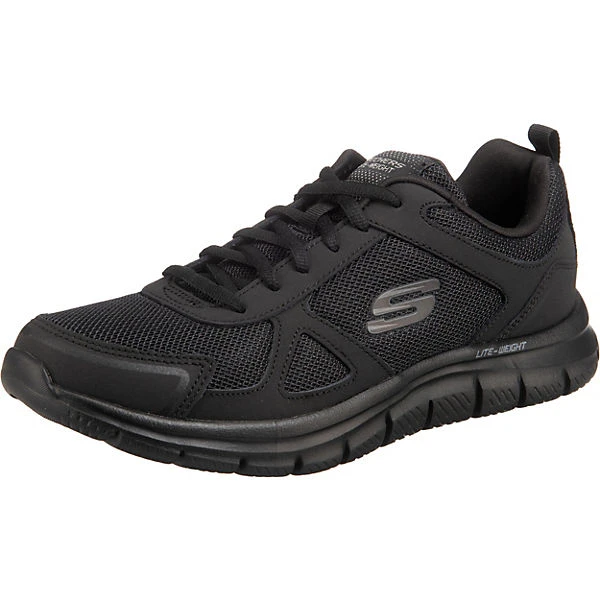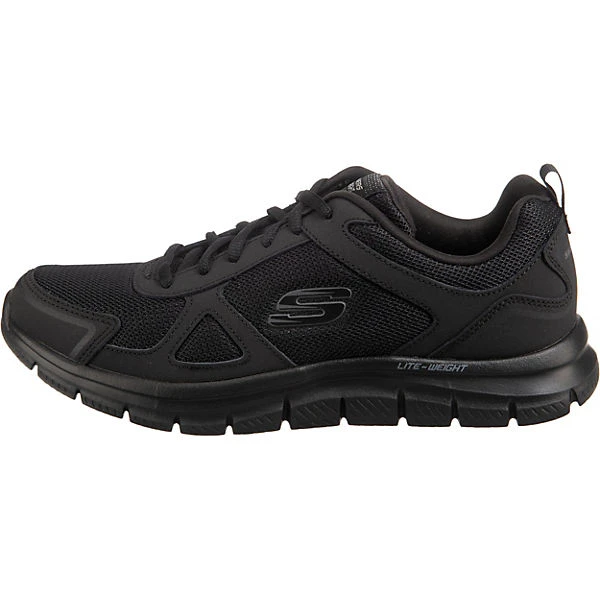 Skechers Herren Low Sneaker Track Scloric schwarz Leder-Textil-Mix, Zuglasche, Labelpatch, Logoprint, gepolstertes Fußbett, Lite-Weight-Laufsohle